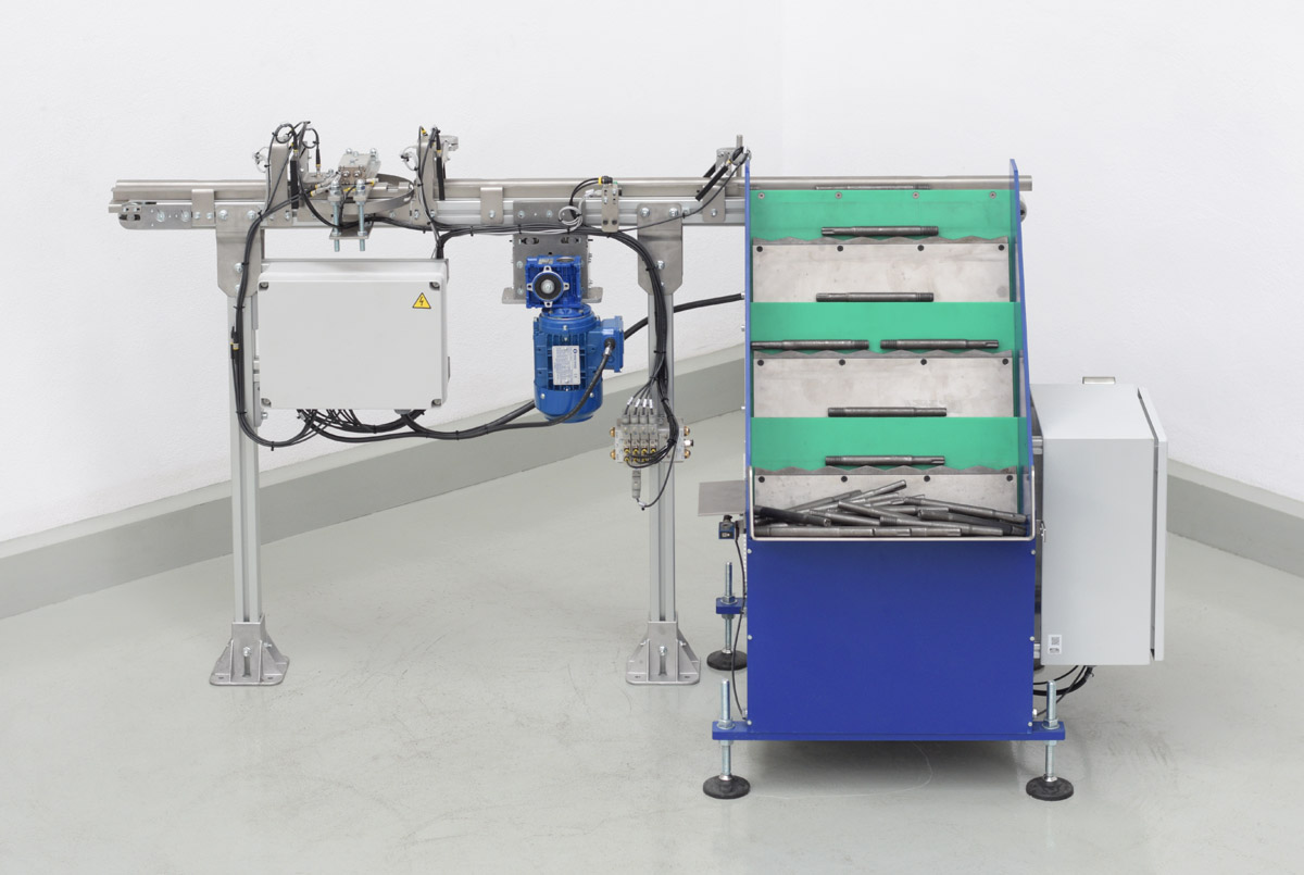 Por cierto, este sistema es compañero de este otro: sistema vibratorio con cinta elevadora para argollas.