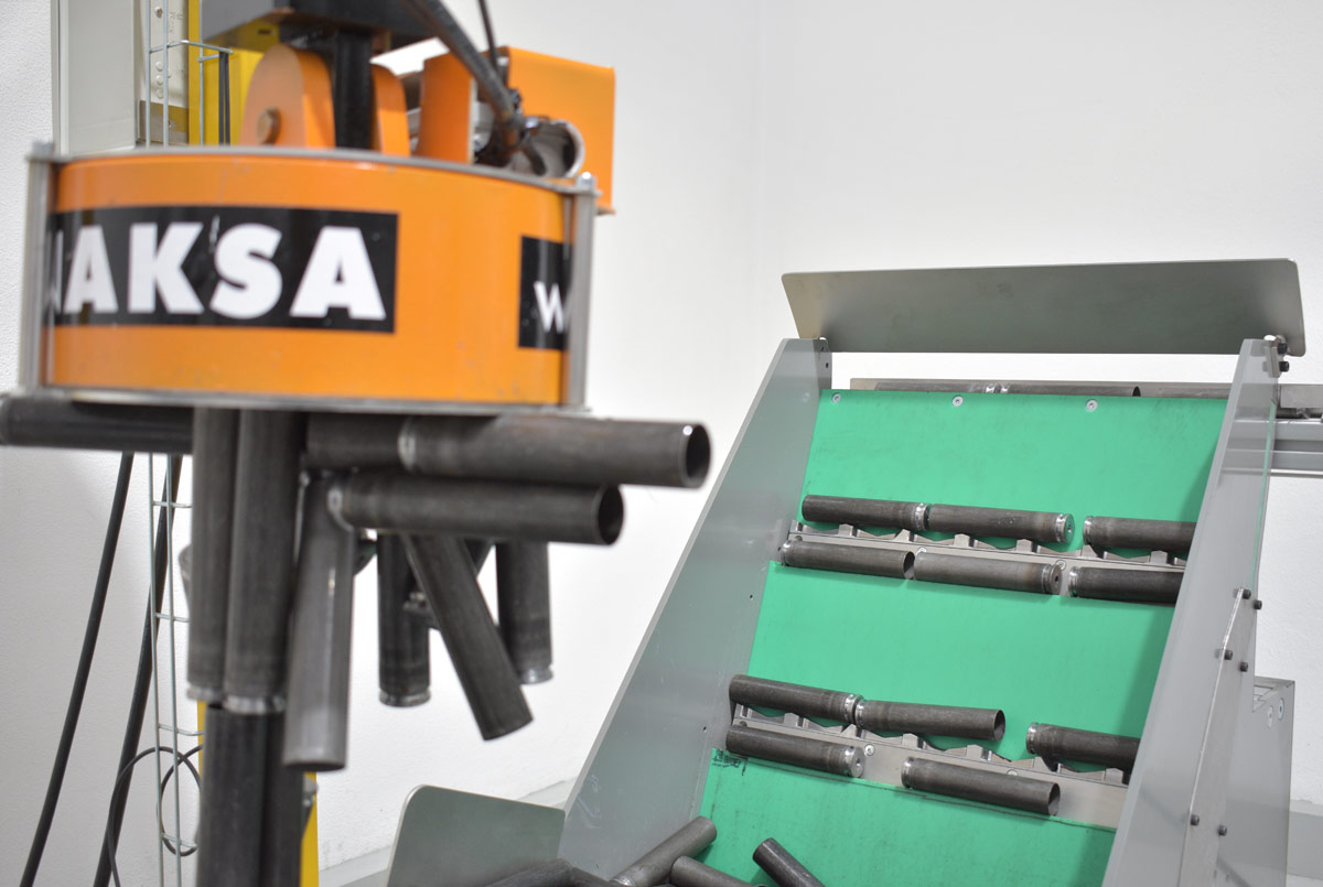 Este equipo, sencillo y sofisticado a la vez, cuenta con un novedoso sistema de alimentación compuesto de un polipasto con electroimán que abastece de casquillos a un elevador de lamas (escalator), y una cinta transportadora de salida de piezas.