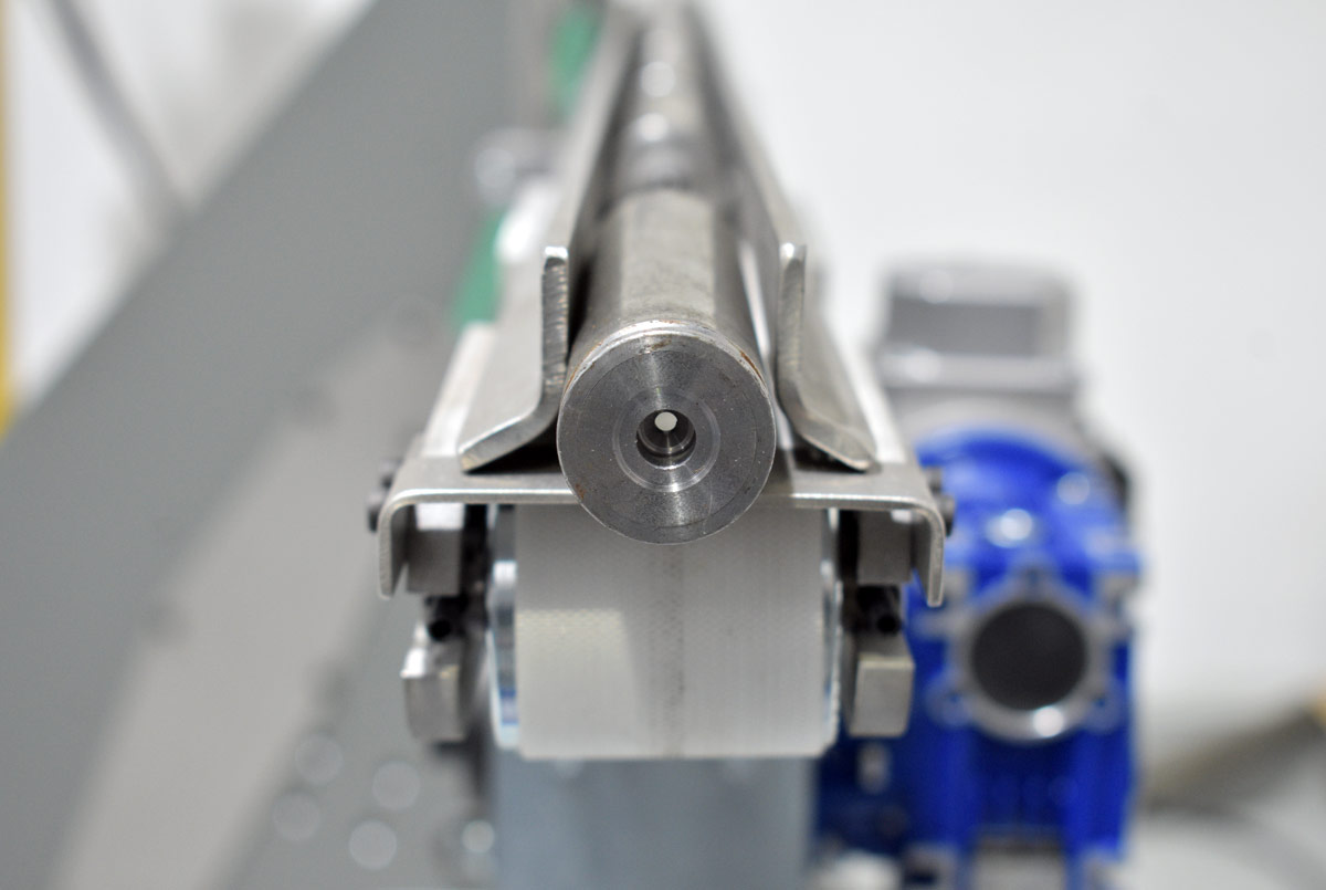 Dicha cinta cuenta con paredes laterales para una mayor eficiencia. Las piezas hacen su salida de una en una y desembocan directamente en la unidad del cliente donde completan el proceso.