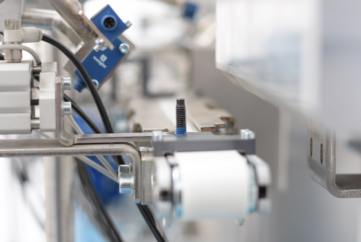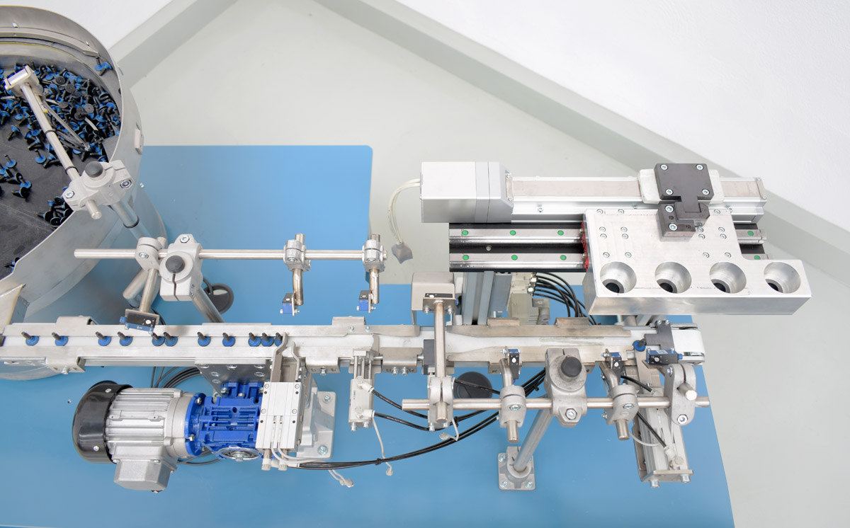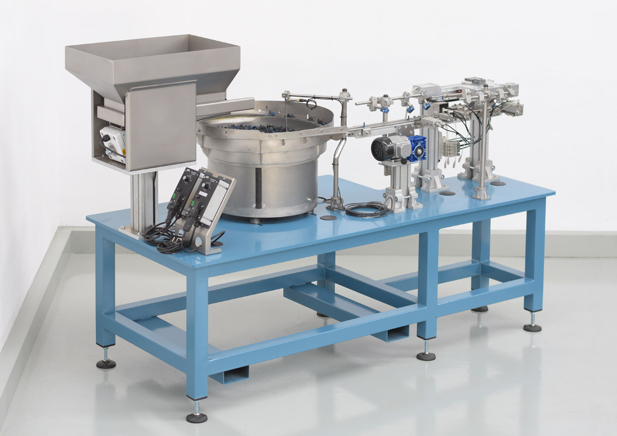 La cuba circular vibratoria alimenta la cinta motorizada del lineal con los tornillos métricos ya posicionados, y estos van desfilando hasta el sistema paso a paso que solo permite el flujo individual de las piezas. Es aquí donde, las que cumplen las condiciones óptimas de calidad, quedan aprobadas para continuar la operativa. Las que no, se descartan.
