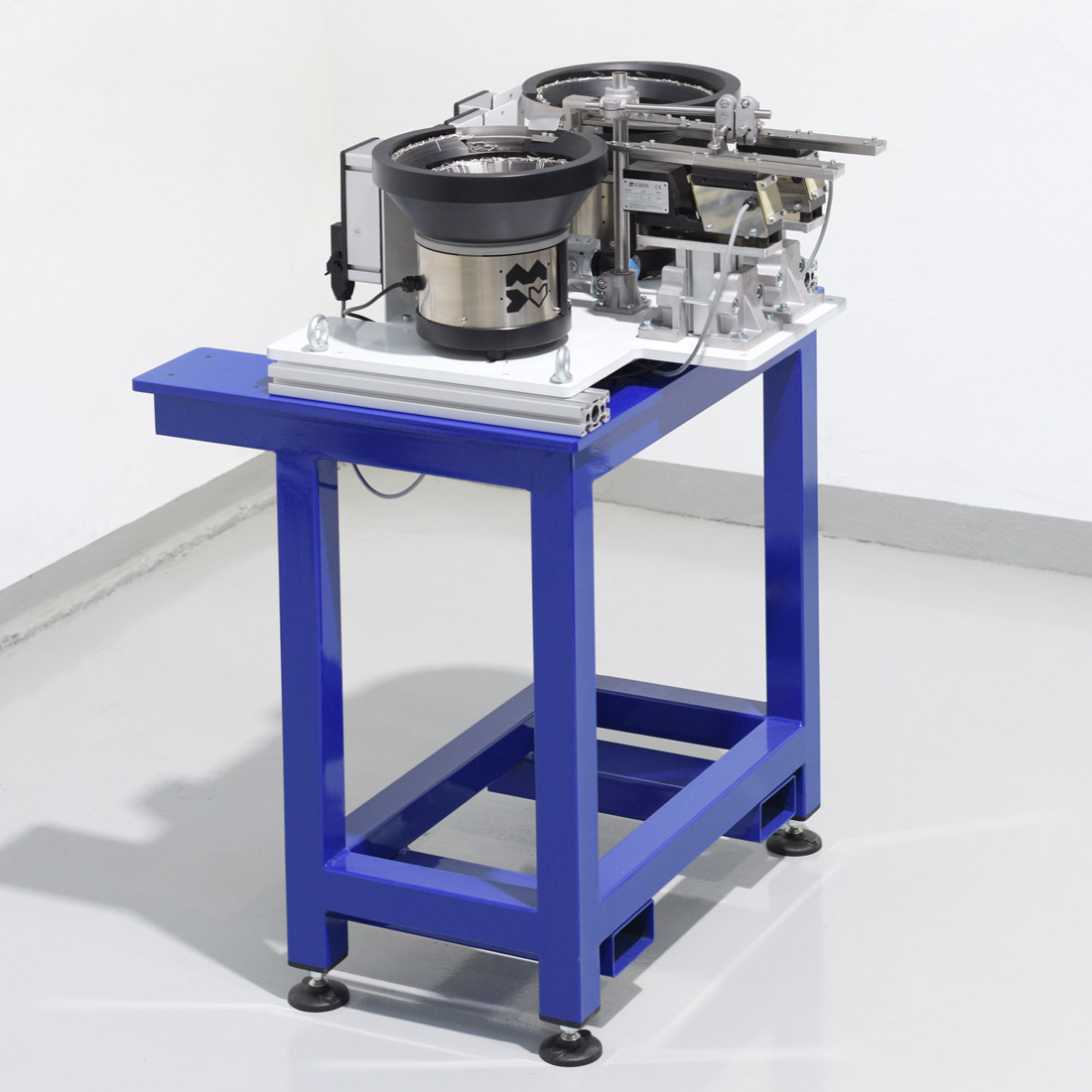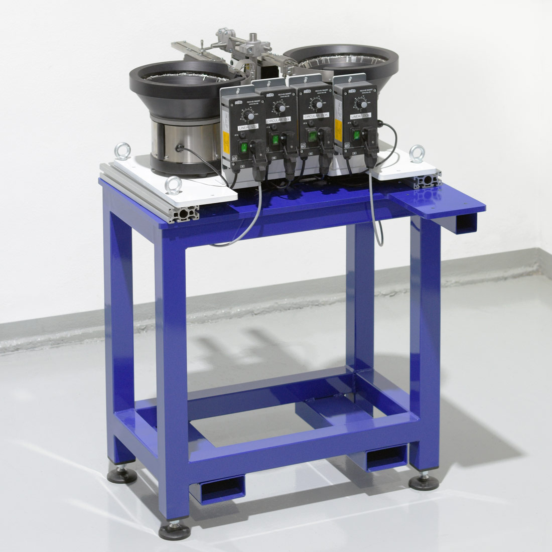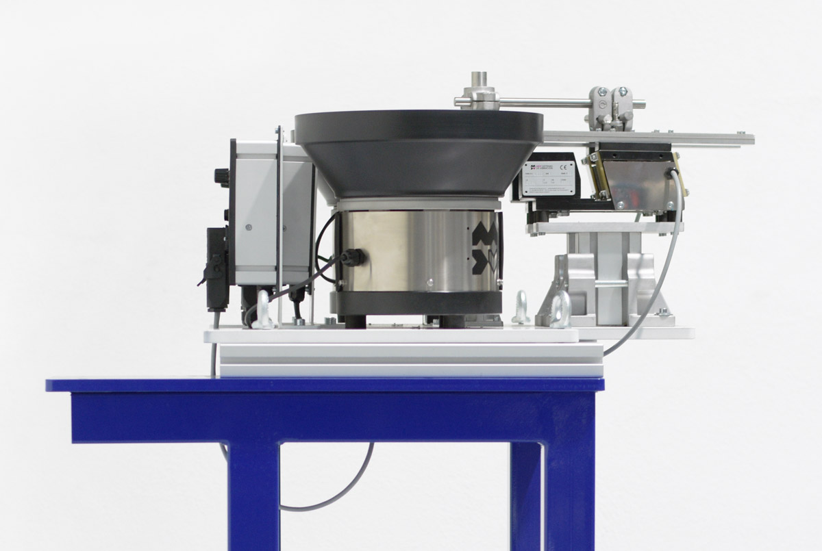 El hecho de que una sea horaria y la otra antihoraria, junto a la decisión de instalar las dos tolvas vibrantes en una misma placa, da como resultado un sistema que ocupa, deliberadamente, lo menos posible. Esto es: rentabilidad máxima en un espacio mínimo.