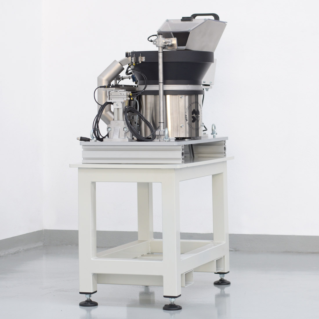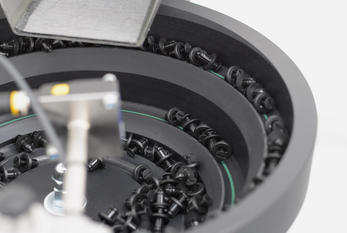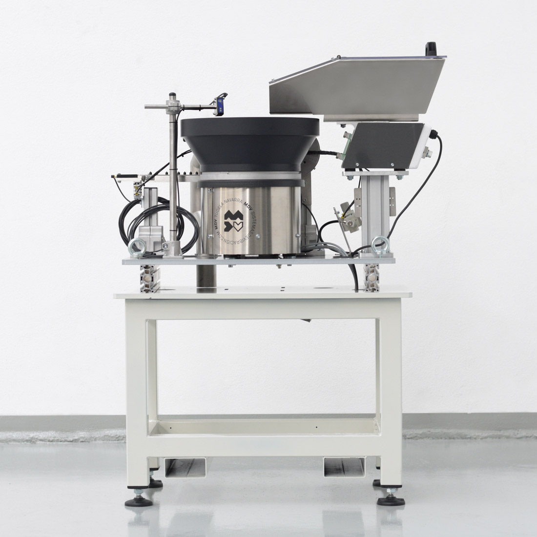 El posicionador detecta las piezas que ya están clipadas para extraerlas del vibrador y enviarlas a un depósito de clips rechazados.