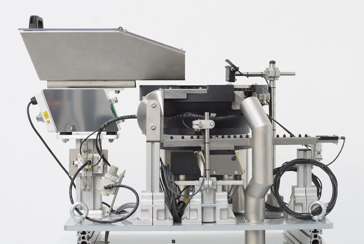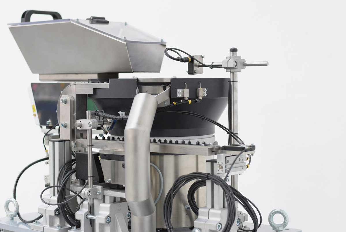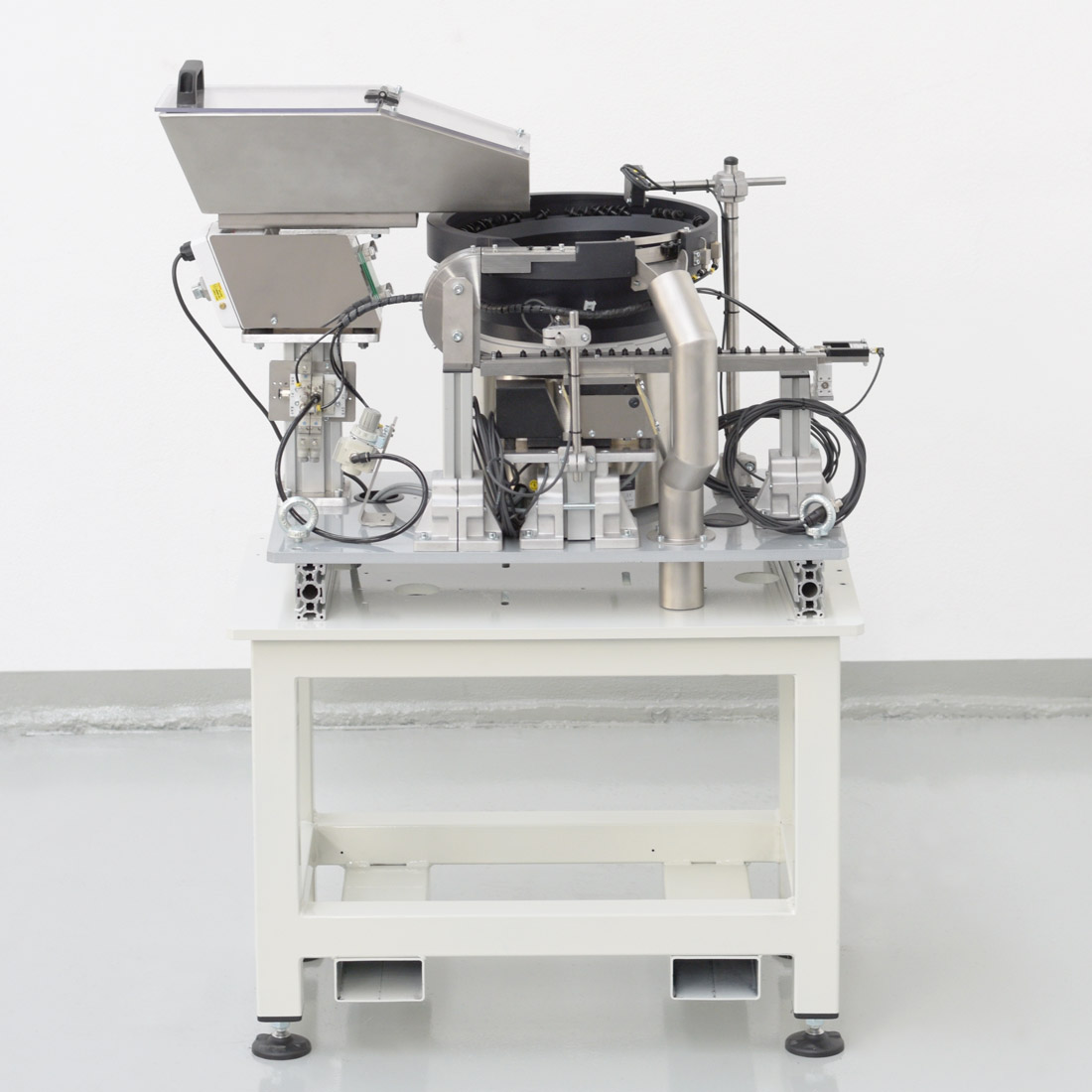 El posicionador detecta las piezas que ya están clipadas para extraerlas del vibrador y enviarlas a un depósito de clips rechazados.