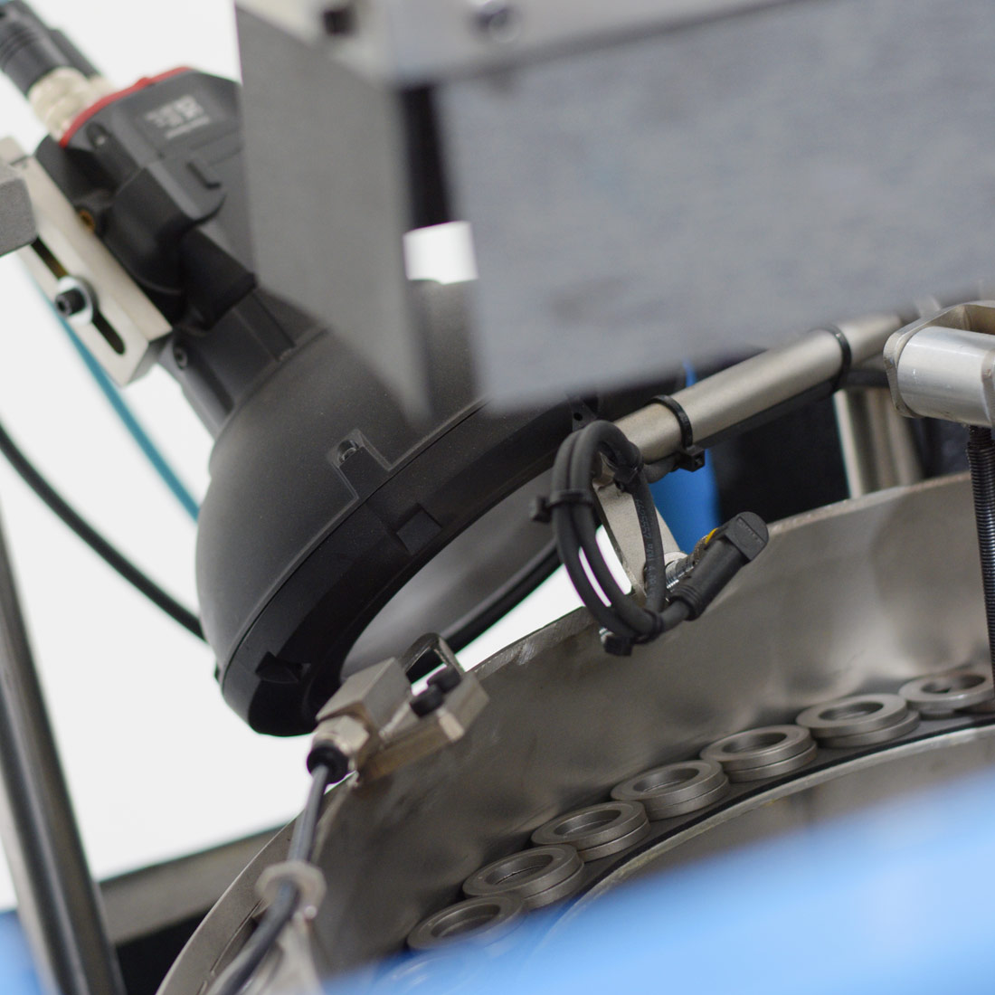 Allí les espera la cámara de visión artificial controlando la entrega perfecta de cada arandela, vigilando que estén presentadas por su cara válida. Las que superen el visionado, alcanzarán el paso a paso que se las suministrará, de forma individual, a la mano robótica que integra el siguiente punto de la línea de producción.